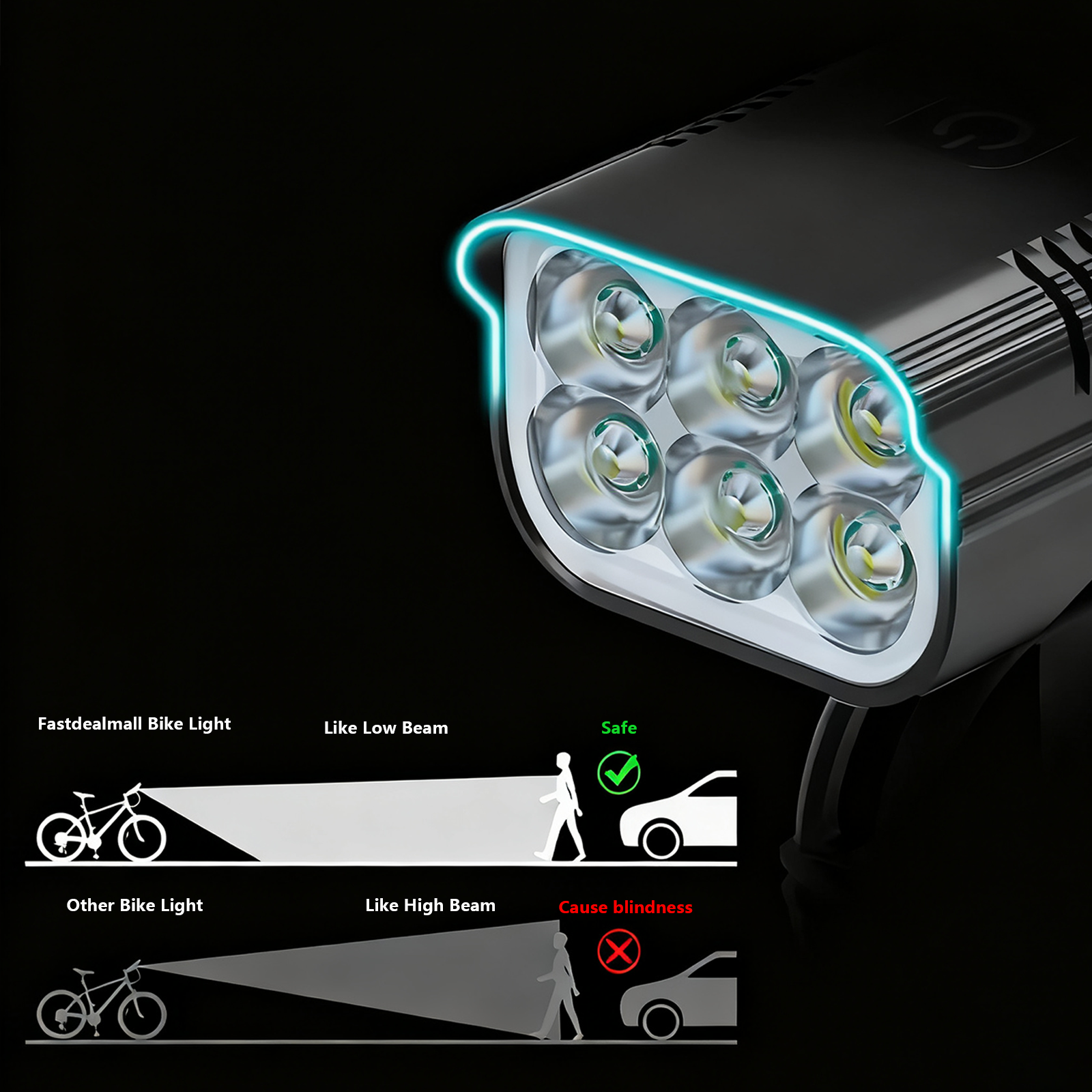 The Teldoris Bike Light utilizes advanced Beam Cut-Off Technology to eliminate disruptive light from the source. The beam is precisely focused downward, effectively cutting off upward glare that could blind others. This technology provides riders with a clear, undisturbed illuminated view, while ensuring the light does not create a hazard for others on the road. Teldoris: Make the night ride both safe and courteous, achieving dual safety assurance.